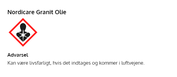 FARE: Indeholder: alifatiske kulbrinter: kan være dødeligt, hvis det indtages og kommer i luftvejene.